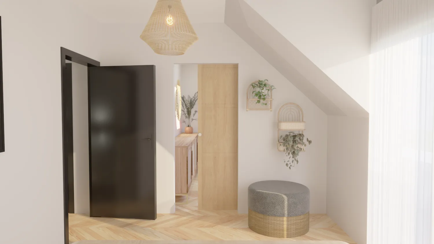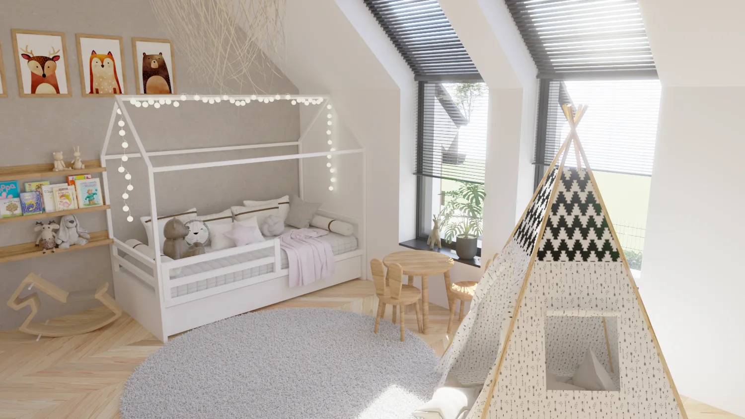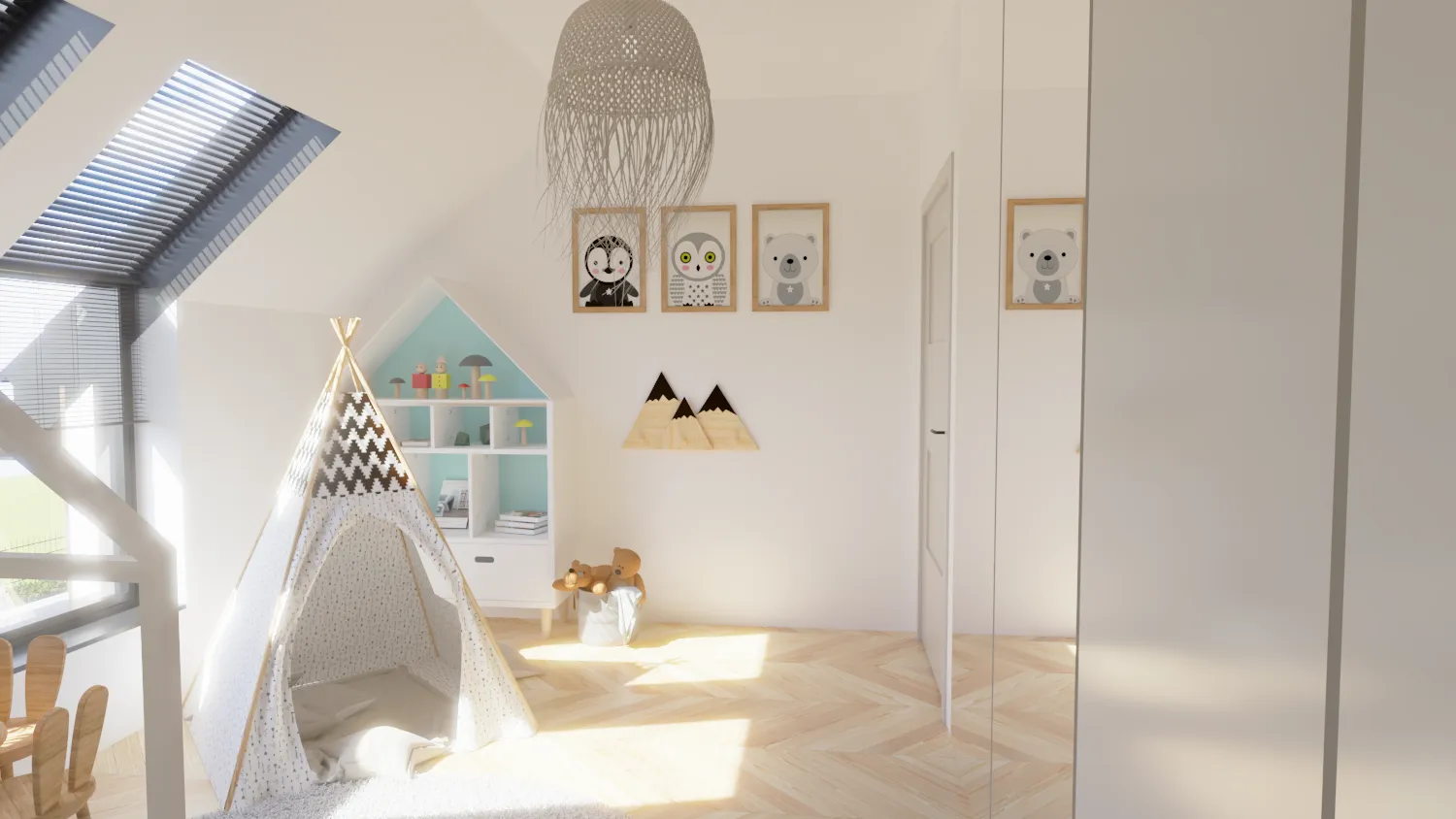 Sypialnie w domach zostały zaprojektowane z myślą o relaksie i wygodzie. Nasze wizualizacje ukazują ciepłe, przytulne wnętrza, w których można w pełni wypocząć. Z kolei pokoje dziecięce charakteryzują się funkcjonalnością i przyjaznym designem, sprzyjającym rozwojowi najmłodszych mieszkańców.